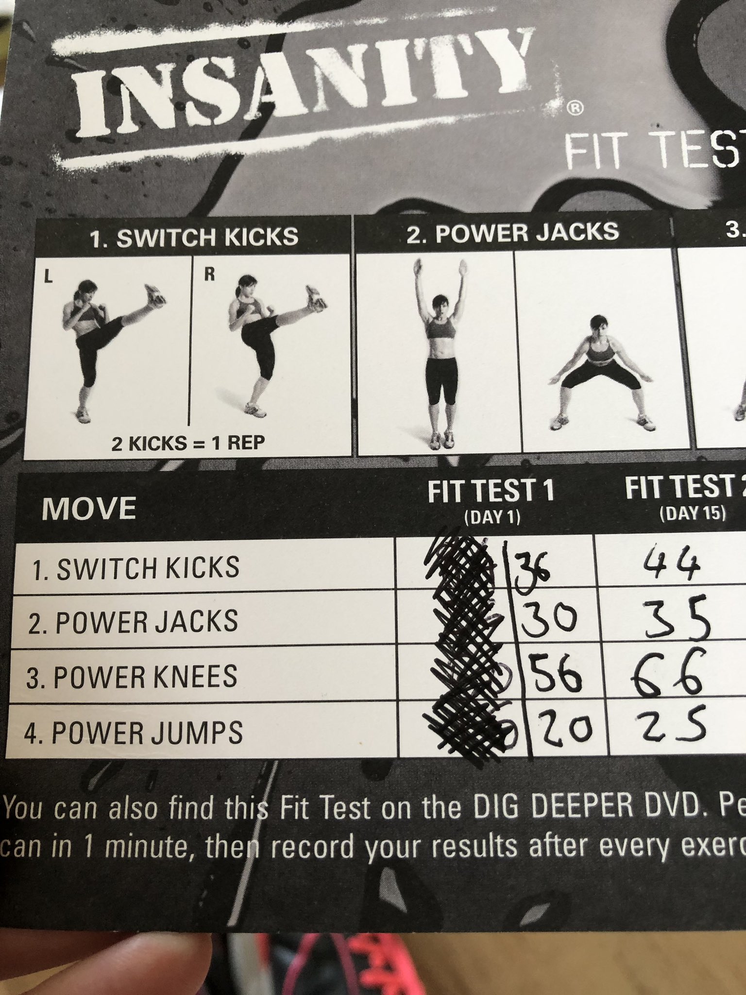 Day 15 Fit Test 2 5 Insanity Workout Log